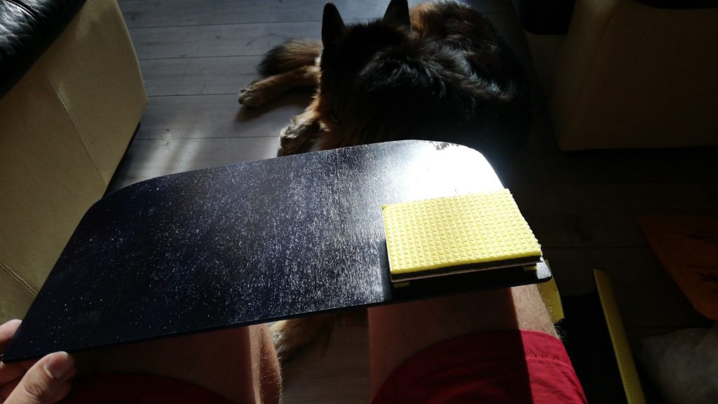 — готовим основание, тут я его отрезал и покрасил в темный, как моя душа, синенький, заодно примерив готовый барабанный пэд…