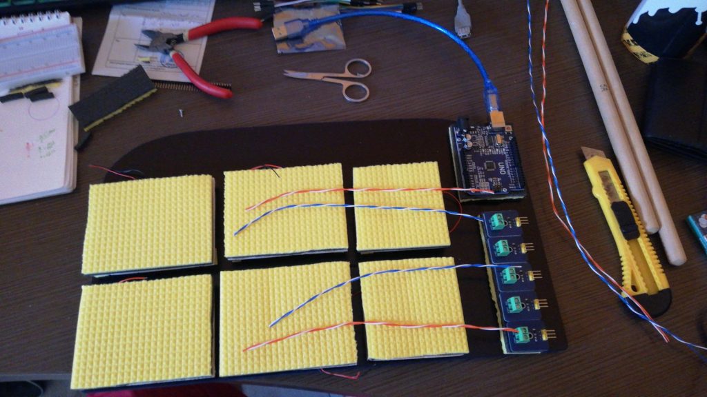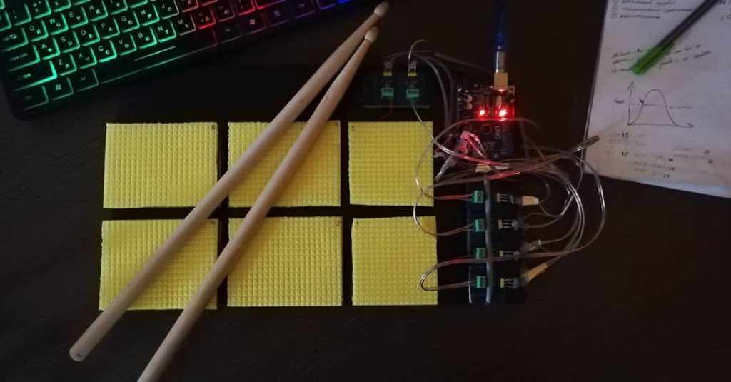 P. S. (тут NANO плата подойдет лучше, так как у нее 8 аналоговых входов) можно добавить еще пэдов или даже педали бас бочки и хай хэта. Обойдется это все примерно в 10$.
